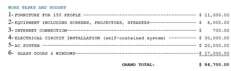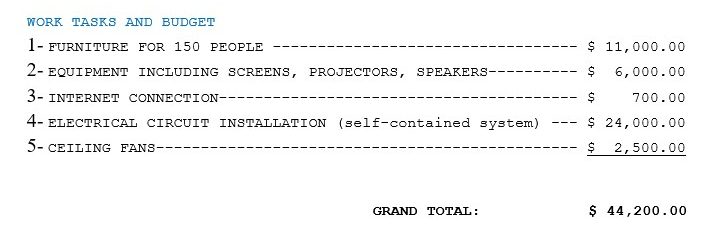 *Note: Fundraising will be only for the laying out of the technology rooms.